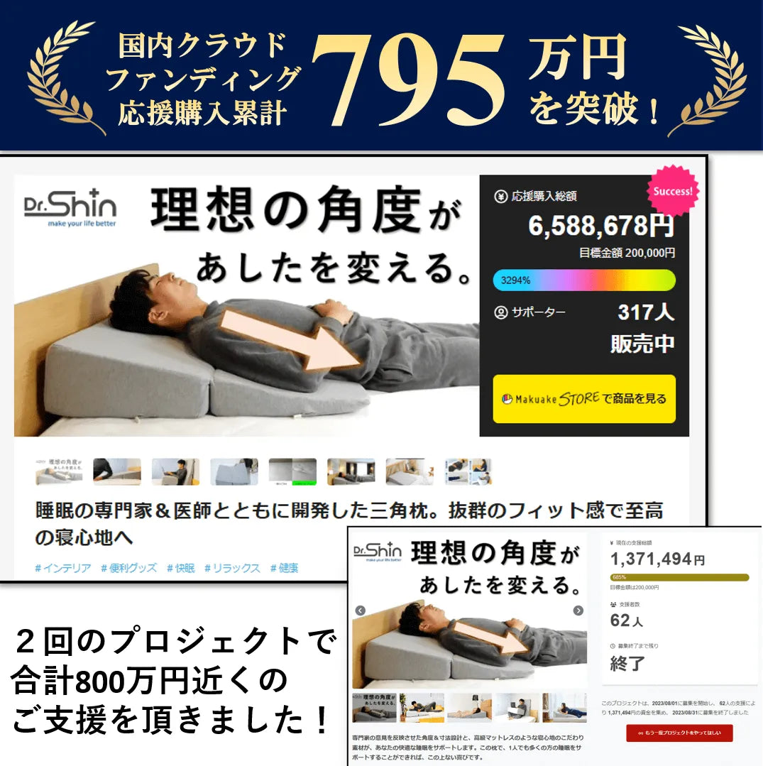 多くの方の睡眠環境に”Dr.Shinウエッジピロー”をお選びいただき、大変感謝いたします。